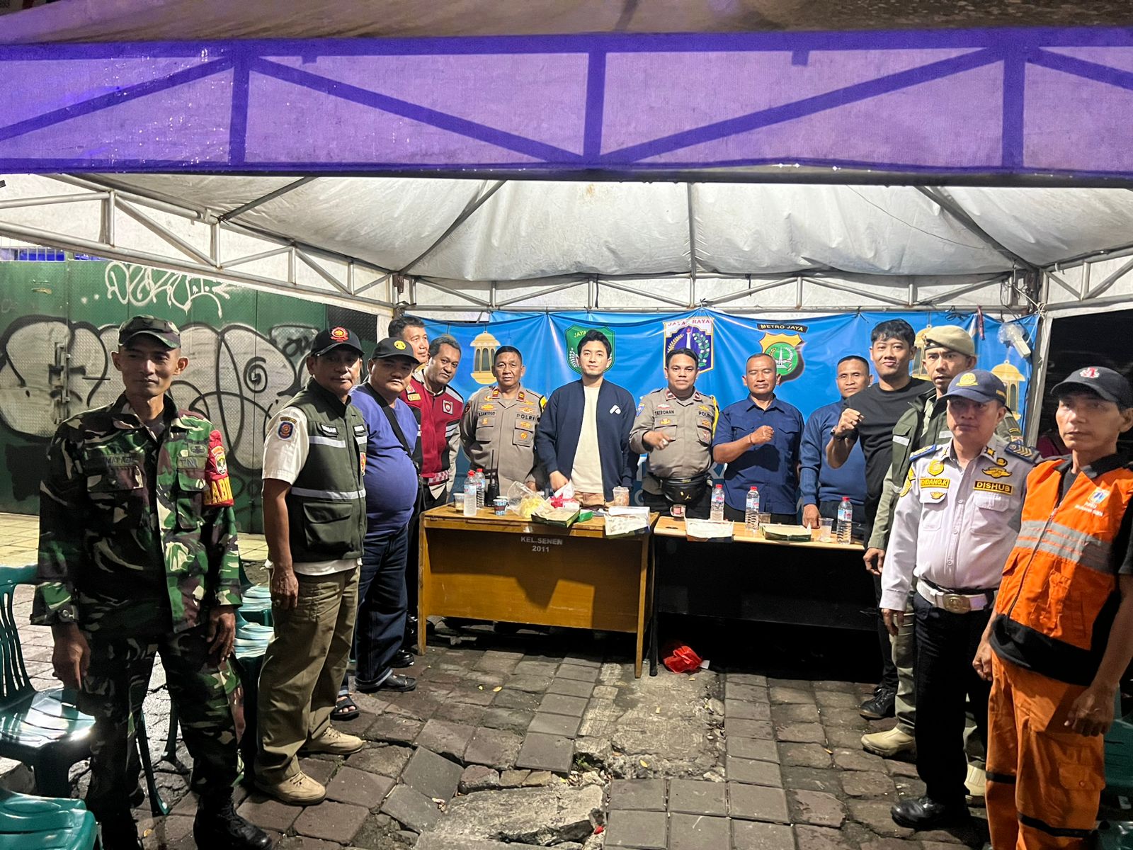 Pengamanan pos pantau melibatkan unsur Tiga Pilar dan elemen masyarakat, di antaranya Bhabinkamtibmas Kelurahan Senen AIPDA Ali Tatroman, Ka Polsubsektor Wangseng IPTU Budi Santoso, staf kelurahan, pengurus RW dan RT, Satpol PP, FKDM, serta petugas PPSU.