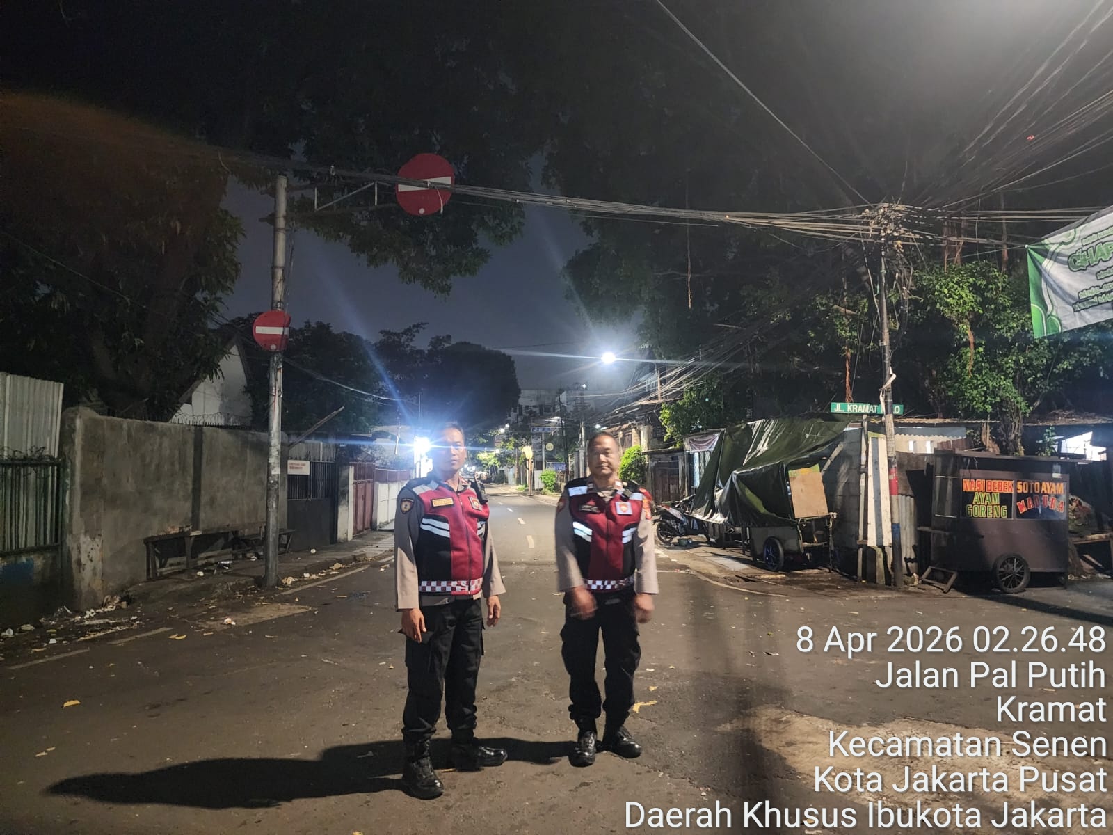 Petugas melakukan penjagaan dan pemantauan situasi di titik rawan menjelang pagi hari, yang kerap menjadi waktu potensial terjadinya aksi tawuran maupun tindak kriminalitas lainnya.