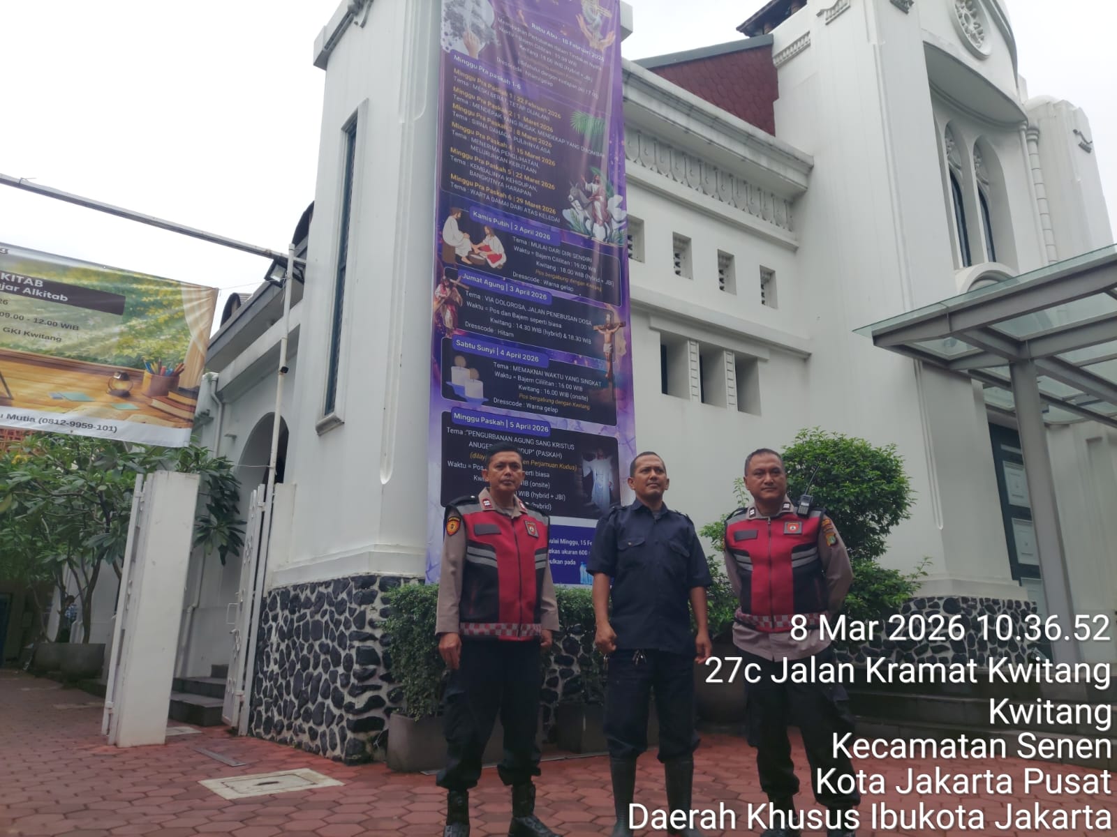 Dalam kegiatan tersebut, personel Unit Samapta Polsek Senen yang bertugas yakni Aiptu Dedi Kurniawan selaku PS Panit I Samapta dan Aiptu Sandi Bintoro selaku PS Panit 3 Samapta. Keduanya melakukan pemantauan situasi sekaligus menyambangi pihak keamanan gereja serta jemaat guna memastikan kegiatan ibadah berjalan dengan aman dan nyaman.