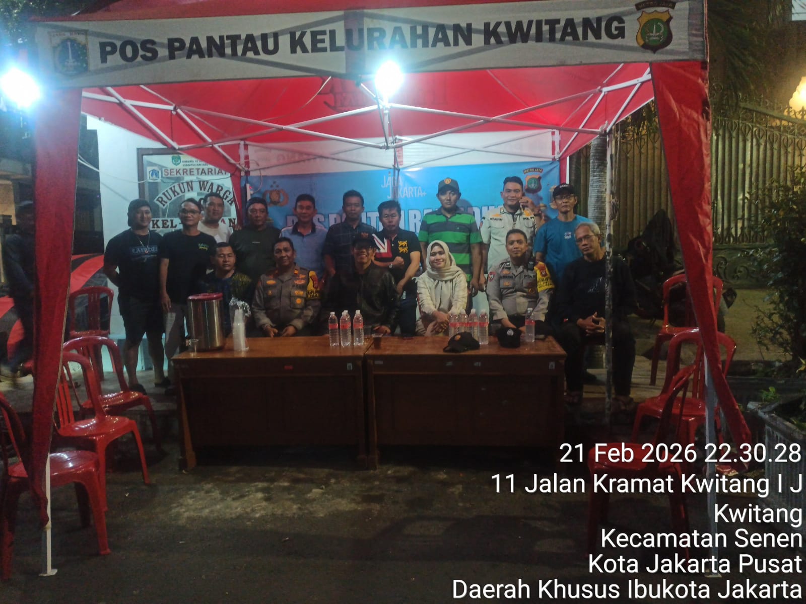 Jakarta – Aparat kewilayahan bersama unsur tiga pilar melakukan pemantauan Pos Pantau Ramadan di wilayah Kelurahan Kwitang, Kecamatan Senen, Jakarta Pusat, Sabtu (21/2/2026) malam. Kegiatan ini dilakukan untuk mengantisipasi potensi tawuran serta gangguan keamanan dan ketertiban masyarakat (kamtibmas) selama bulan Ramadan.