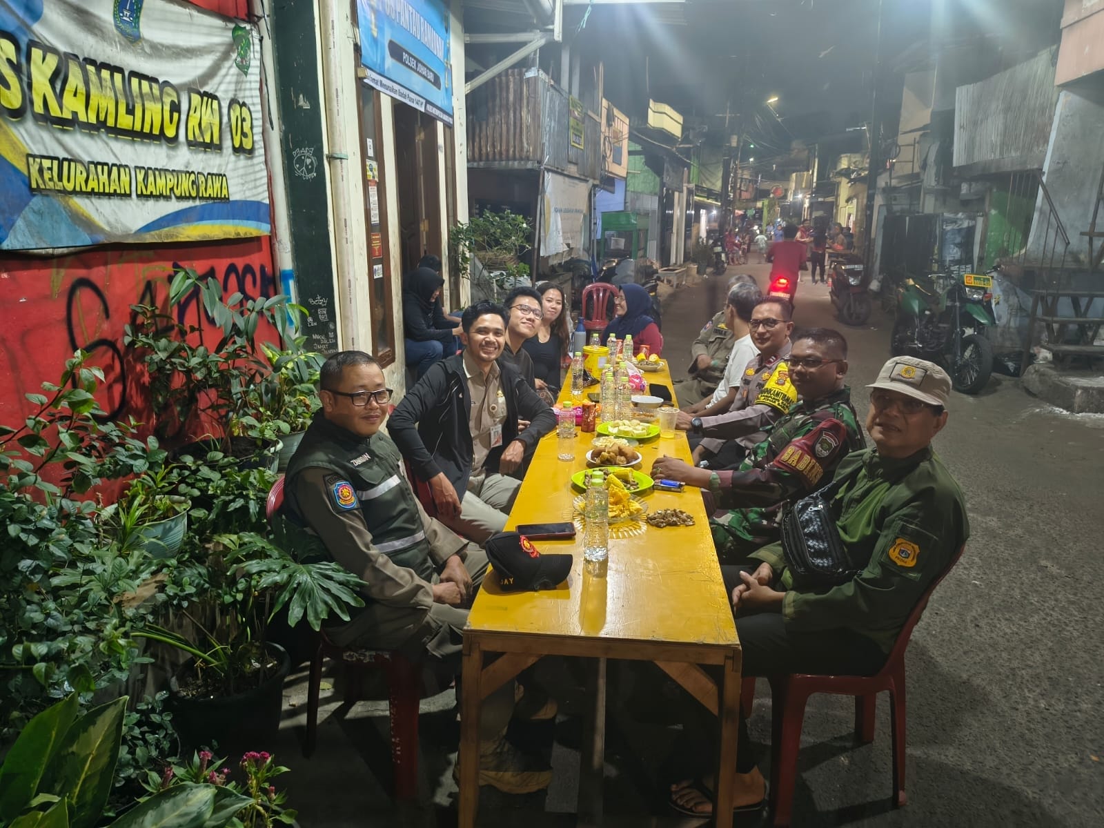 Dalam kegiatan tersebut, personel kepolisian yang bertugas adalah Aiptu Ikhwan selaku Bhabinkamtibmas Kelurahan Kampung Rawa. Kegiatan juga dihadiri oleh Sekretaris Kelurahan Kampung Rawa Wira, Babinsa Serda Trynaldi, Ketua RW 03 beserta pengurus RW dan RT, Forum Kewaspadaan Dini Masyarakat (FKDM), serta personel Satpol PP.