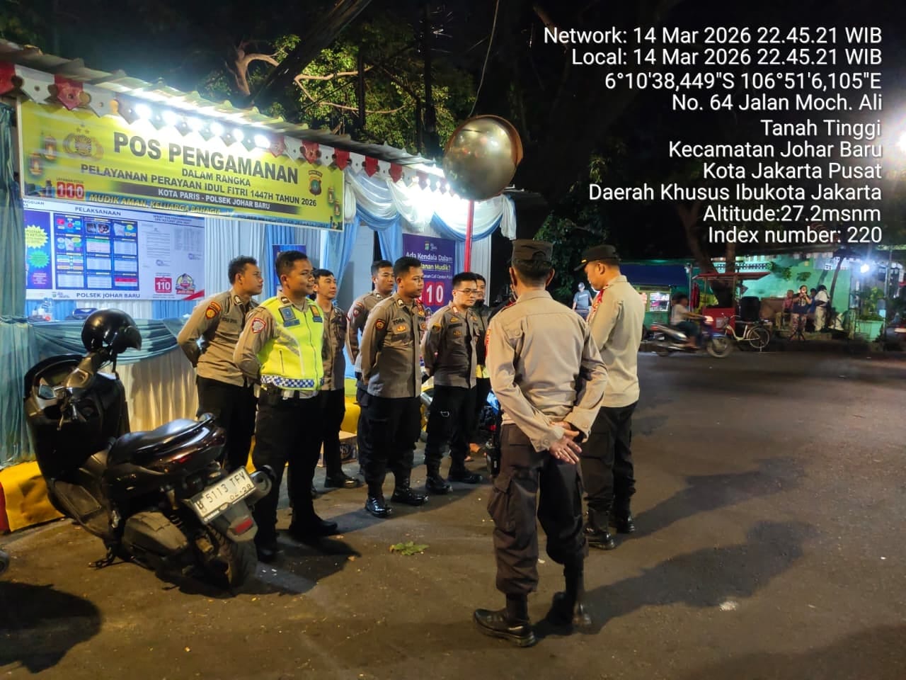 Jakarta Pusat – Dalam rangka menjaga keamanan dan ketertiban masyarakat selama pelaksanaan Operasi Ketupat Jaya 2026, jajaran kepolisian menyiagakan personel di Pos Pengamanan (Pospam) Kota Paris, Kelurahan Tanah Tinggi, Kecamatan Johar Baru, Jakarta Pusat. Kegiatan pengamanan tersebut dilaksanakan pada Sabtu (14/3/2026) pukul 22.30 WIB.