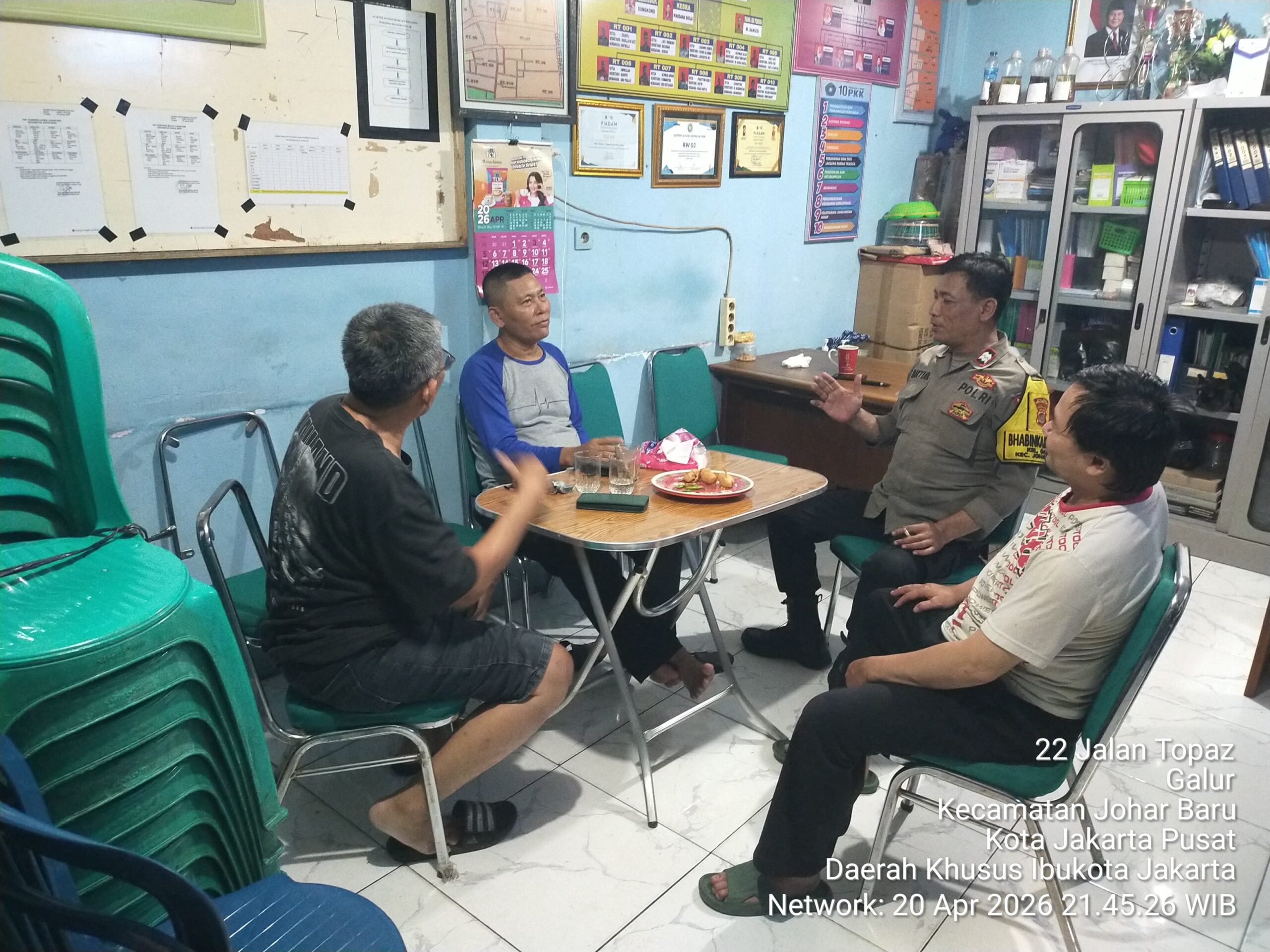 Jakarta Pusat — Upaya menjaga keamanan dan ketertiban masyarakat (kamtibmas) terus diperkuat melalui kegiatan patroli dan sambang Pos Keamanan Lingkungan (Poskamling) di RW 02, Kelurahan Galur, Kecamatan Johar Baru, Selasa (21/4/2026) malam.