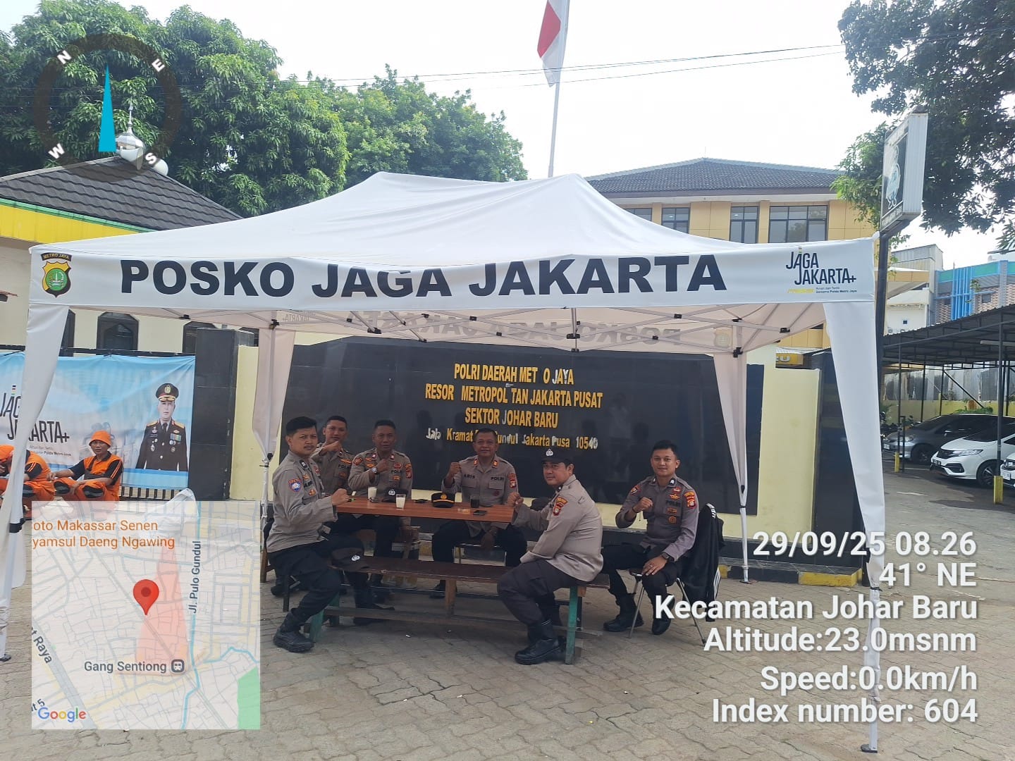 Jakarta Pusat – Polsek Johar Baru menggelar kegiatan Posko Jaga Jakarta Plus yang berlokasi di Mapolsek Johar Baru, Jl. Kramat Pulo Gundul, Kelurahan Tanah Tinggi, Kecamatan Johar Baru, Jakarta Pusat, pada Senin (29/9/2025) pukul 08.40 WIB.