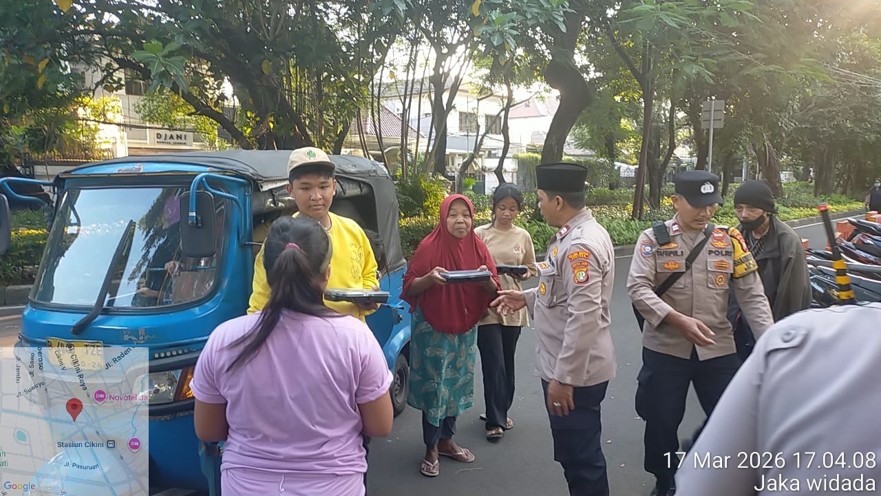 Jakarta Pusat – Dalam rangka menyemarakkan bulan suci Ramadan serta memperkuat kepedulian sosial kepada masyarakat, jajaran Polsek Metro Menteng kembali melaksanakan kegiatan Ramadhan Suci Polri Berbagi. Kegiatan ini menjadi wujud nyata kehadiran Polri di tengah masyarakat melalui aksi sosial dengan membagikan nasi siap saji untuk berbuka puasa. Selasa (17/3/2026)