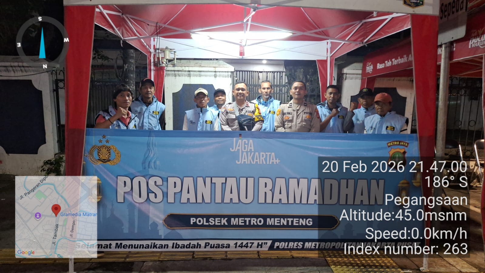 Jakarta Pusat – Memasuki bulan suci Ramadhan, Polsek Metro Menteng mengintensifkan langkah antisipasi gangguan keamanan dan ketertiban masyarakat (kamtibmas), khususnya potensi tawuran warga serta kerawanan malam hari. Kegiatan pengamanan dilaksanakan di Pos Pantau Tambak, Jalan Proklamasi, Pegangsaan, Menteng, Jakarta Pusat, sebagai salah satu titik strategis dengan mobilitas warga yang cukup tinggi pada malam hari. Jumat (20/2/2026)