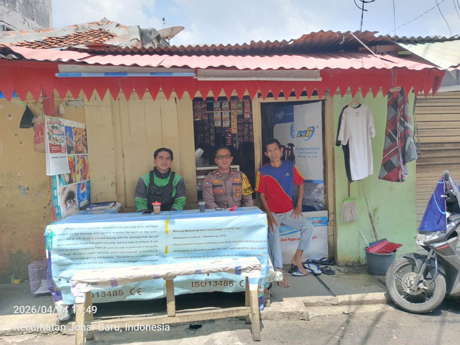 Kegiatan yang dilaksanakan pada Selasa, 14 April 2026 pukul 11.40 WIB ini berlangsung di Pangkalan Ojol Kampung Rawa, Jl. Rawa Sawah I RT 07 RW 06, Kecamatan Johar Baru, Jakarta Pusat, dengan pelaksana Bhabinkamtibmas Kelurahan Kampung Rawa, Aiptu Ikhwan.