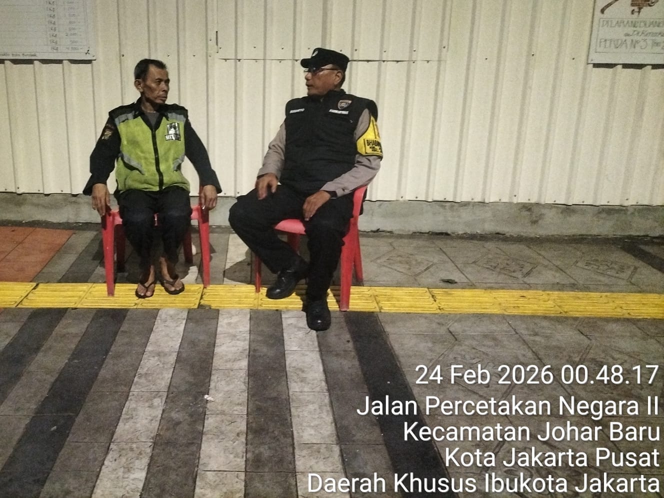 Kegiatan tersebut dilakukan oleh Aiptu Sunarto selaku Bhabinkamtibmas Kelurahan Johar Baru bersama Bapak Rudi sebagai awak Satkamling RW 07. Dalam sambangnya, petugas melakukan dialog dan bertukar informasi terkait potensi gangguan kamtibmas di lingkungan setempat.