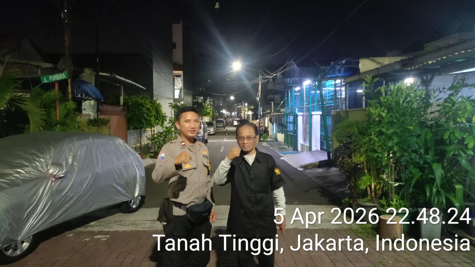 Jakarta Pusat – Upaya menjaga keamanan lingkungan terus dilakukan jajaran Polsek Johar Baru melalui kegiatan sambang dan patroli wilayah. Pada Minggu (5/4/2026) pukul 22.30 WIB, Bhabinkamtibmas Kelurahan Tanah Tinggi Aipda Tangguh melaksanakan kunjungan ke Pos Satkamling RT 10 RW 05, Jalan Purbaya, Kelurahan Tanah Tinggi, Kecamatan Johar Baru, Jakarta Pusat.
