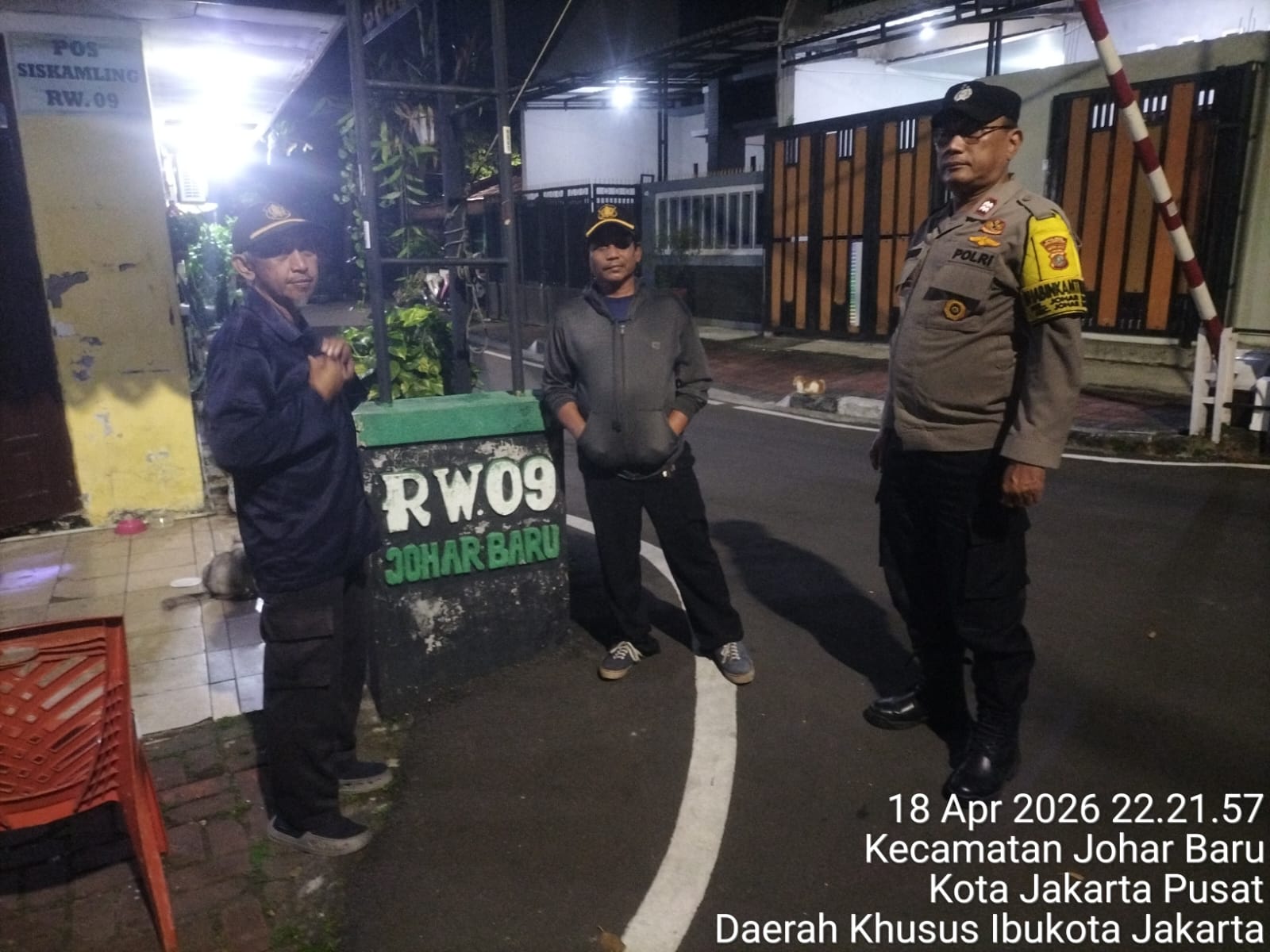 Jakarta Pusat – Dalam upaya memperkuat keamanan lingkungan berbasis masyarakat, Bhabinkamtibmas Kelurahan Johar Baru melaksanakan patroli wilayah sekaligus sambang Satkamling di RW 09, Kelurahan Johar Baru, Kecamatan Johar Baru, Jakarta Pusat, Minggu (19/4/2026) dini hari.