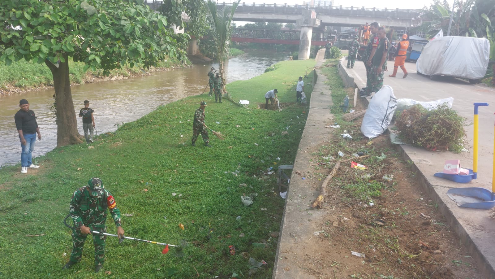 Dengan mengusung semangat “Bakti Teritorial Prima”, puluhan personel TNI bersama unsur pemerintah, komunitas, dan warga turun langsung membersihkan tumpukan sampah, terutama plastik yang mencemari area bantaran sungai.