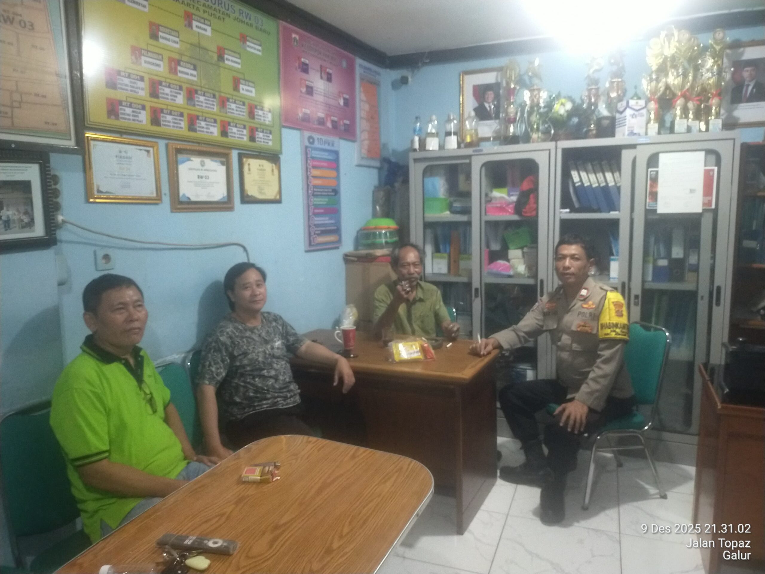 Jakarta Pusat — Menjelang perayaan Natal dan Tahun Baru 2026, jajaran Polsek Johar Baru terus meningkatkan kegiatan preventif untuk menjaga keamanan lingkungan. Pada Selasa (9/12/2025) pukul 21.15 WIB, Bhabinkamtibmas Kelurahan Galur Aiptu Baktiar melaksanakan sambang Pos Kamling RW 03 yang berlokasi di Balai Warga RW 03, Jl. Topaz, Kelurahan Galur, Kecamatan Johar Baru.