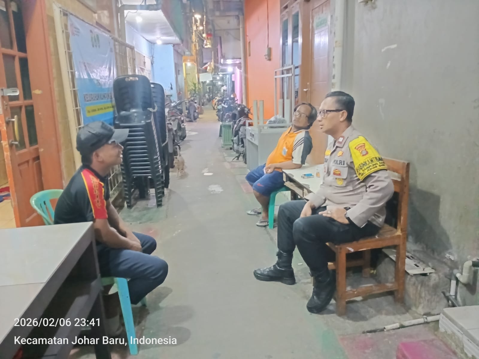 Kegiatan yang berlangsung pada pukul 23.40 WIB tersebut dilaksanakan di Pos Kamling RW 06, Jalan Rawa Sawah 2 RT 04/RW 06 Kelurahan Kampung Rawa. Dalam kegiatan sapa malam ini, Aiptu Ikhwan bertemu dengan Aim, selaku awak satkamling, untuk berdialog dan bertukar informasi terkait situasi keamanan lingkungan.