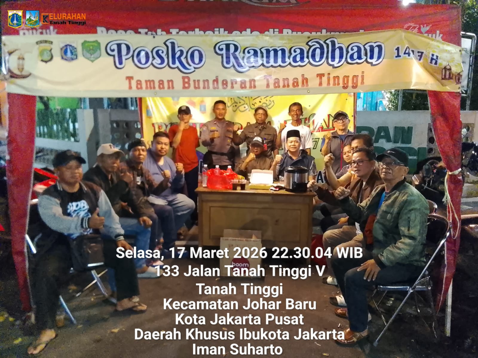 Kegiatan yang berlangsung pukul 21.30 WIB tersebut dilaksanakan di kawasan Taman Bundaran Kelapa, Jl. Tanah Tinggi IV RW 01, Kelurahan Tanah Tinggi, Kecamatan Johar Baru, Jakarta Pusat. Aipda Tangguh selaku Bhabinkamtibmas hadir langsung menyambangi warga yang tengah melaksanakan siskamling.
