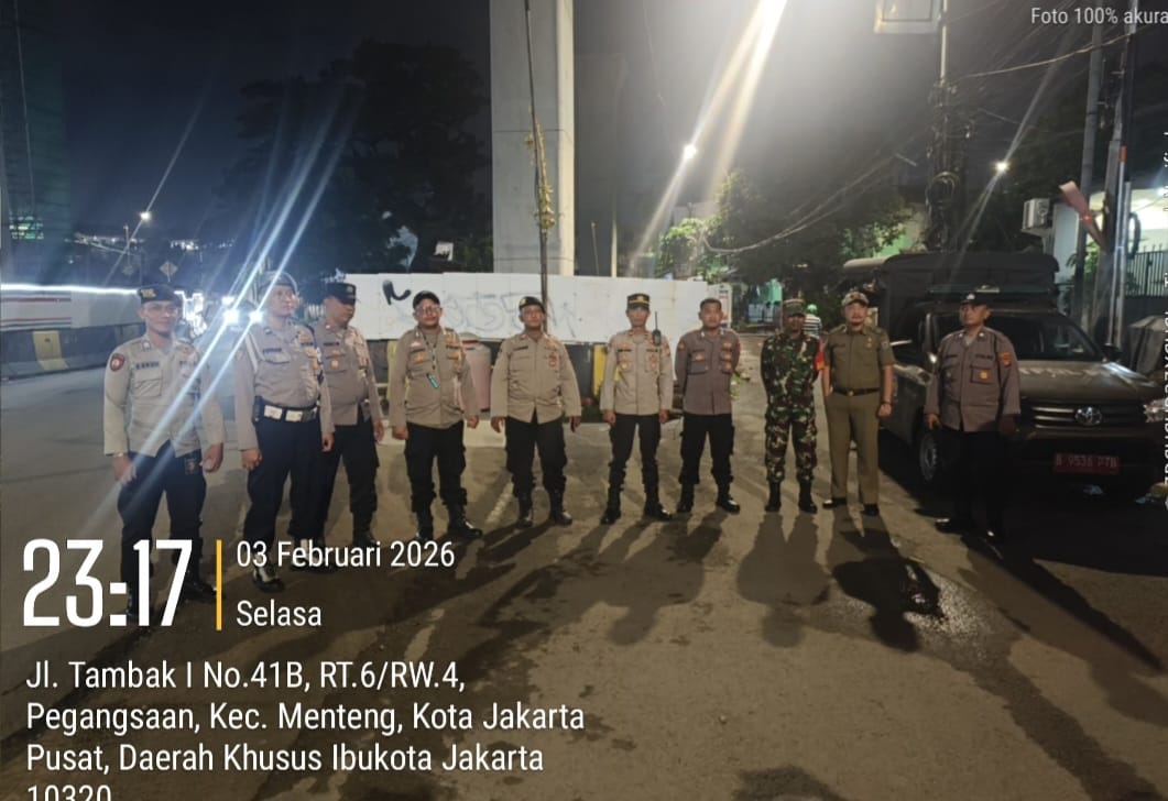 Jakarta Pusat — Guna mengantisipasi gangguan keamanan dan ketertiban masyarakat (kamtibmas), khususnya potensi tawuran warga dan kerawanan pada malam hingga dini hari, Polsek Metro Menteng kembali menggelar patroli tiga pilar di wilayah rawan perbatasan Manggarai–Tambak Ujung, Menteng, Jakarta Pusat. Rabu (4/2/2026)