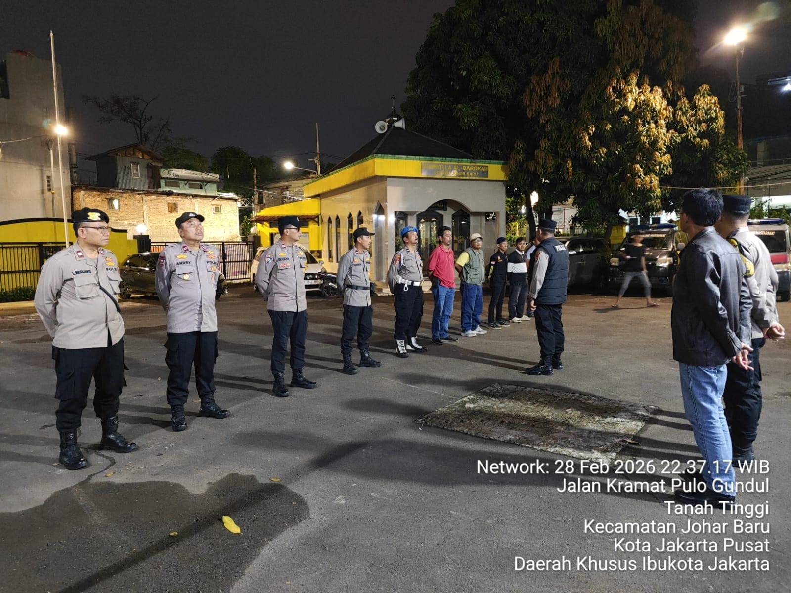 Jakarta Pusat – Dalam upaya menjaga situasi keamanan dan ketertiban masyarakat (kamtibmas) selama bulan suci Ramadhan 1447 H/2026, Polsek Johar Baru bersama unsur Tiga Pilar menggelar Apel Patroli Gabungan Antisipasi Guantibmas di halaman Polsek Johar Baru, Sabtu (28/2/2026) pukul 22.33 WIB di wilayah Jakarta.