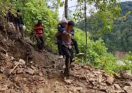 Personel Polres Gayo Lues Evakuasi Warga Sakit dengan Cara Digendong di Desa Tetumpun