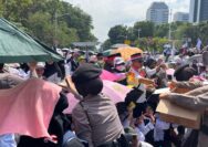 Polisi Bagikan Air Mineral kepada Massa Aksi di Depan Gedung DPR: Wujud Kepedulian dan Simpatik Polri