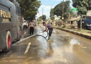 Minimalisir Debu Pasca Banjir, Polri Lakukan Pembersihan dan Penyiraman Jalan Protokol Aceh Tamiang