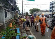 Bhabinkamtibmas Petamburan Bersama Unsur Kelurahan Tata Pot dan Tanam Pohon di Jalan KS Tubun Raya