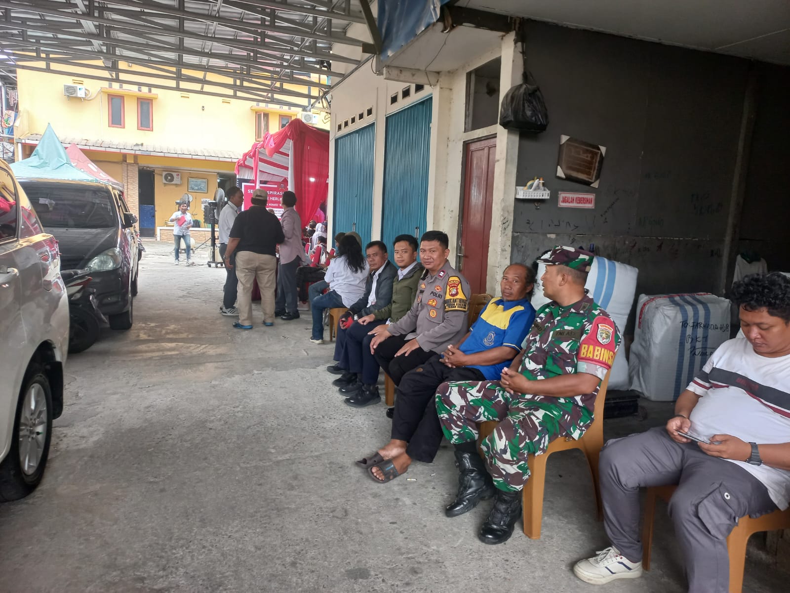 Jakarta Pusat — Bhabinkamtibmas Kelurahan Kebon Kacang Aiptu Suhartono bersama Tiga Pilar melaksanakan monitoring kegiatan Serap Aspirasi Masyarakat yang digelar oleh Anggota Komisi B DPRD DKI Jakarta di Jalan Jati Bunder IV RT 11 RW 09, Kelurahan Kebon Kacang, Kecamatan Tanah Abang, Jakarta Pusat, Rabu sore (11/02/2026).