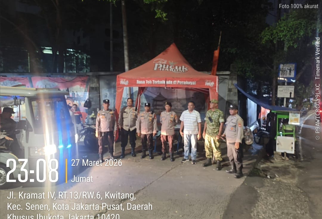 Jakarta Pusat – Dalam rangka menjaga situasi keamanan dan ketertiban masyarakat (kamtibmas) tetap kondusif pasca libur Lebaran, jajaran Tiga Pilar Kecamatan Menteng meningkatkan patroli wilayah dengan menyasar kawasan perbatasan Kwitang–Kalipasir, Menteng, Jakarta Pusat. Wilayah ini menjadi perhatian khusus karena memiliki potensi kerawanan tawuran warga. Sabtu (28/3/2026)