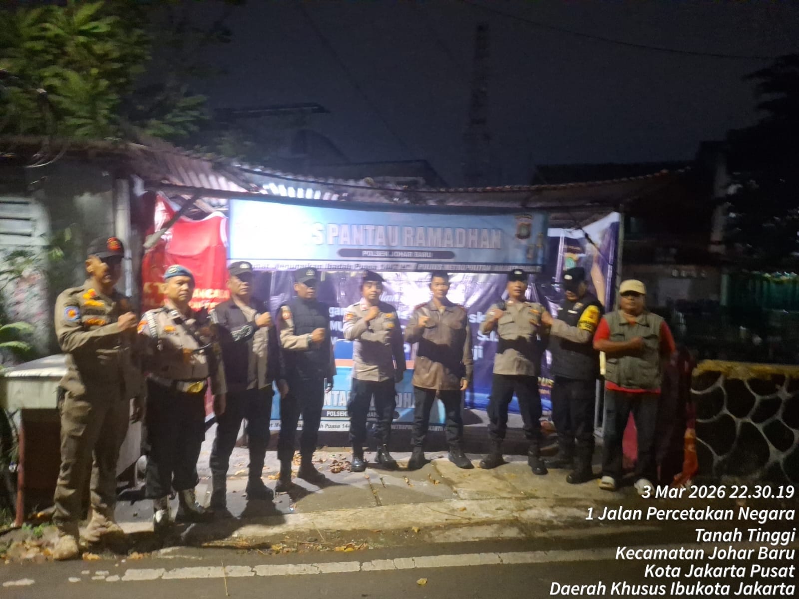 Jakarta Pusat – Sinergitas Tiga Pilar bersama Polsek Johar Baru terus diperkuat dalam menjaga stabilitas keamanan selama bulan suci Ramadhan 1447 H/2026. Pada Selasa, 3 Maret 2026 mulai pukul 21.00 WIB, dilaksanakan pengamanan Pos Pantau Ramadhan di wilayah hukum Polsek Johar Baru dengan melibatkan 11 personel gabungan, dipimpin langsung Kapolsek Johar Baru, Kompol Saiful Anwar.