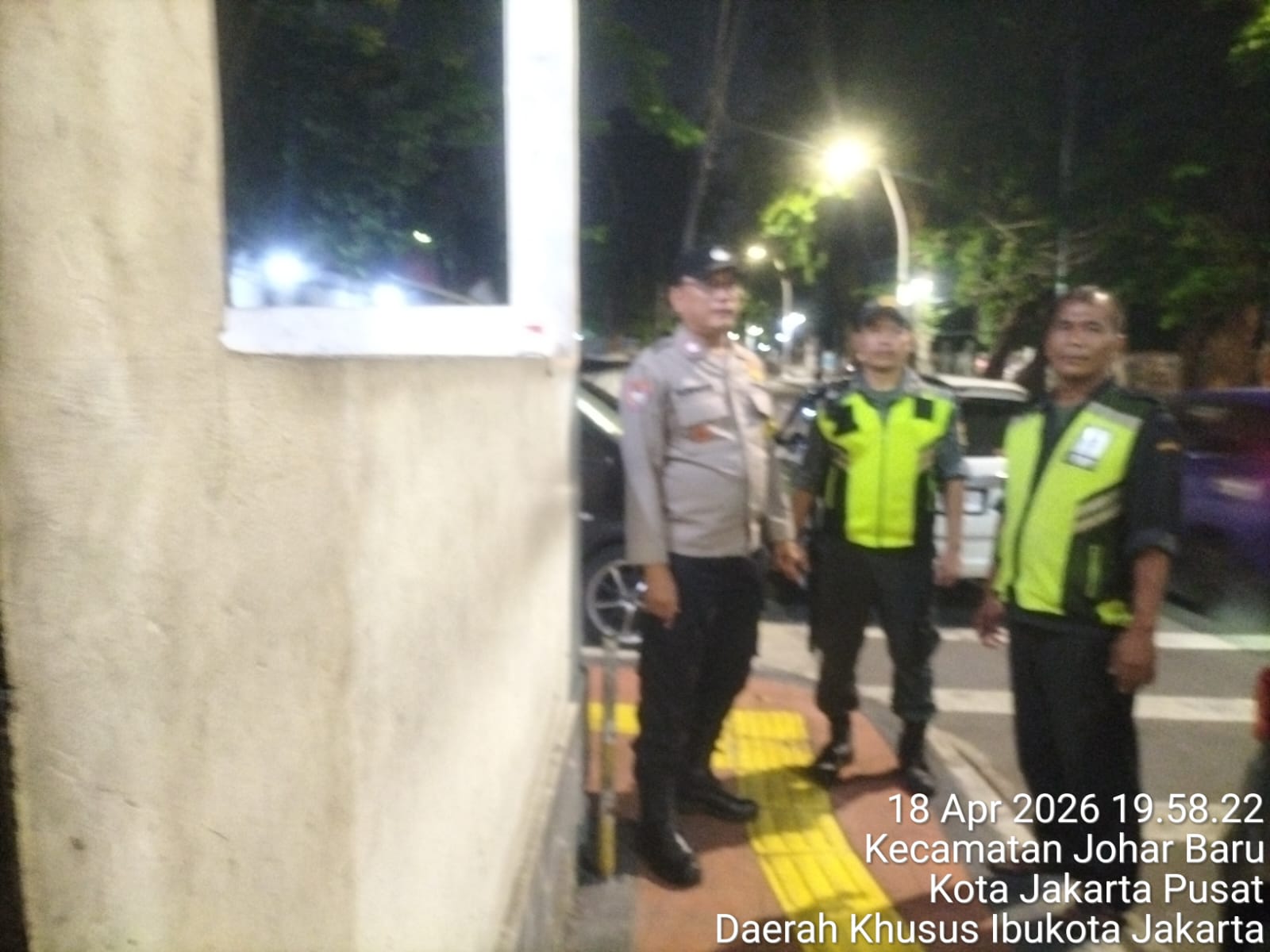 Jakarta Pusat – Dalam rangka meningkatkan keamanan dan ketertiban masyarakat, Bhabinkamtibmas Kelurahan Johar Baru melaksanakan patroli wilayah sekaligus sambang Satkamling di RW 07, Kelurahan Johar Baru, Kecamatan Johar Baru, Jakarta Pusat, Sabtu (18/4/2026) malam.