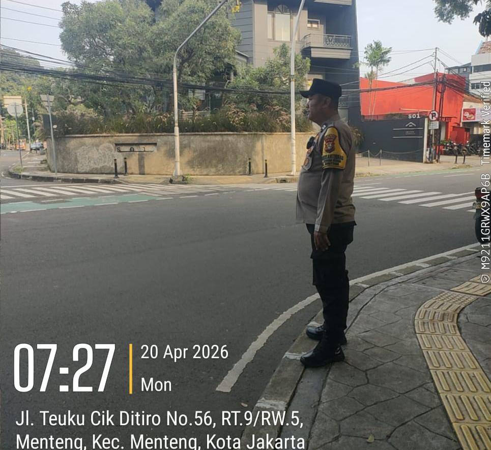 Jakarta Pusat – Aktivitas pagi hari di wilayah Menteng, Jakarta Pusat, yang dipenuhi mobilitas warga berhasil dikendalikan berkat kesiapsiagaan Bhabinkamtibmas Kebon Sirih Aiptu Ujang Rusman yang turun langsung mengatur arus lalu lintas di persimpangan Traffic Light (TL) Jalan Cik Ditiro. Kegiatan ini dilakukan untuk mengantisipasi lonjakan kendaraan saat jam masuk sekolah, jam kerja perkantoran, serta aktivitas masyarakat lainnya. Senin (20/4/2026)