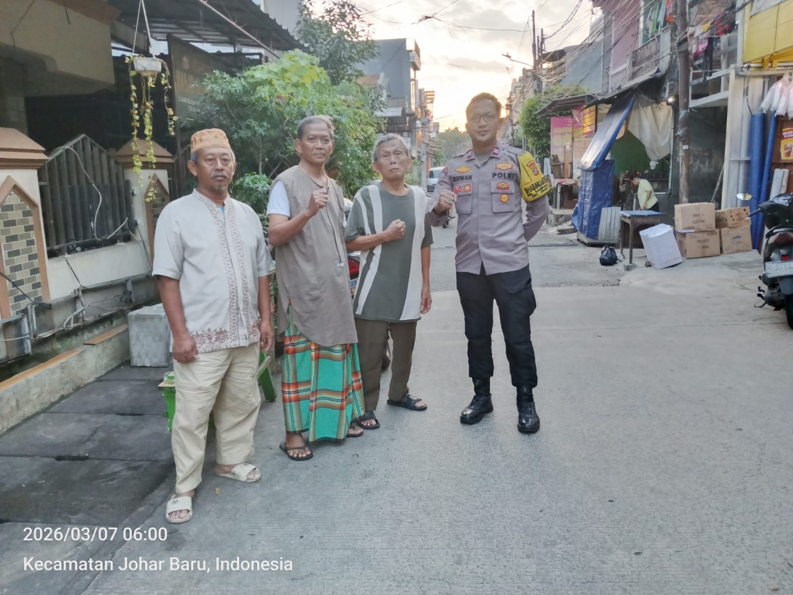 Jakarta Pusat – Usai pelaksanaan salat Subuh, jajaran Polsek Johar Baru melakukan patroli wilayah dan monitoring situasi kamtibmas di Kelurahan Kampung Rawa, Kecamatan Johar Baru, Jakarta Pusat, Sabtu (7/3/2026) pukul 06.00 WIB.